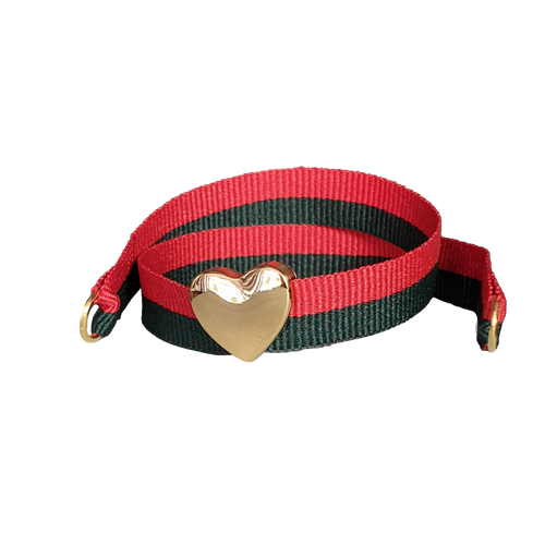 BRACCIALE VERDE/ROSSO CUORE DORATO