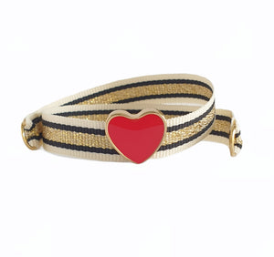 BRACCIALE PANNA LAME' CUORE SMALTO ROSSO SU DORATO